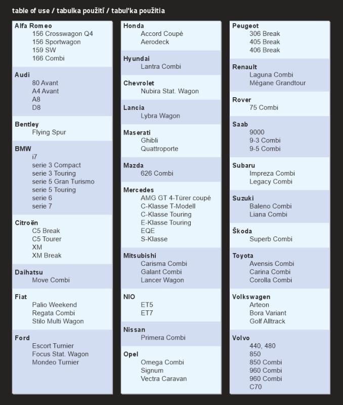 Saab | 9000, 9-3 Combi, 9-5 Combi |