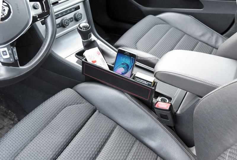 Praktická kapsa mezi sedadlo a středovou konzoli, kapsa je opatřena dvěma odkládacími prostory a je vhodná pro běžné drobnosti.Montáž se provede pouhým zasunutím mezi přední sedadlo a konzoli. V případě potřeby je možné použít nalepovací podložku pro vymezení prostoru a zamezení svévolného pohybu.