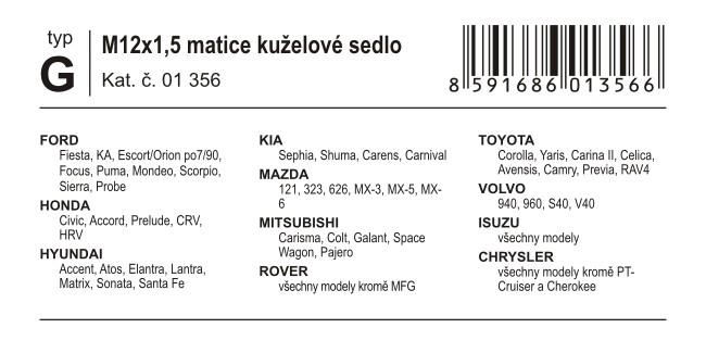 Pojistné matice kol G M12x1,50 kuželové sedlo |