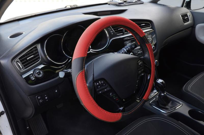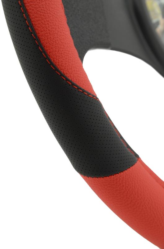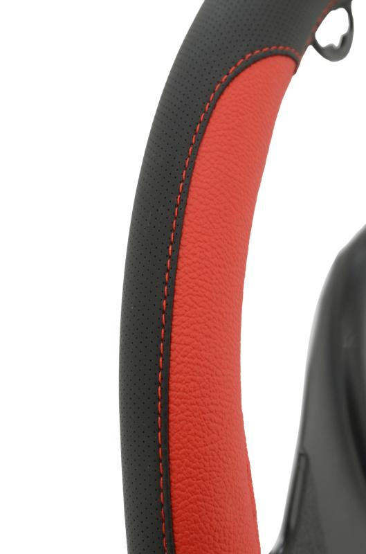 Stylový potah volantu s unikátním provedením, v pastelově červené barvě s černým podkladem a pastelově červeným prošíváním.Potah je příjemný na omak, ergonomicky tvarovaný s perforací pro usnadněný úchop. Potah chrání volant před opotřebením a zlepšuje řízení, jelikož brání smýkání rukou.