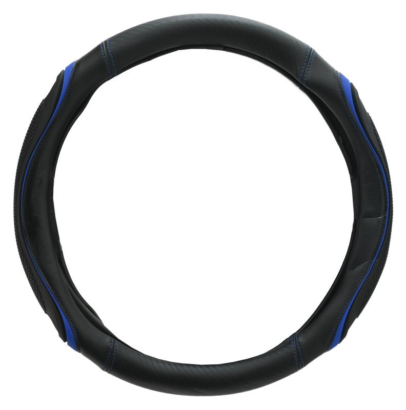 Potah volantu robustním a zároveň pohodlným provedením úchopové části.Zpracování na černém podkladu je dolpněné častmi se vzorem imitujícím karbon a prošíváním v červené barvě. Úchopová část je tvořena měkkou gumou v kombinaci černé a červené barvy.