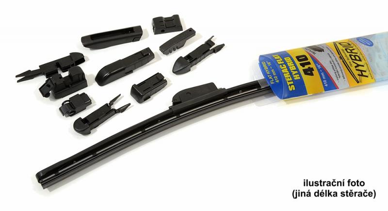 Stěrač hybridní konstrukce, nová technologie - plochý stěrač s prvky klasického stěrače.Díky zvýšenému přítlaku zabezpečuje tato technologie dokonalé stírání. Teflonový povlaku břitu pak zajišťuje jemné stírání.