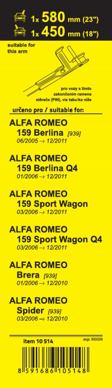 | Alfa Romeo 159 Berlina Ϋ | 06/05 - 12/11 |