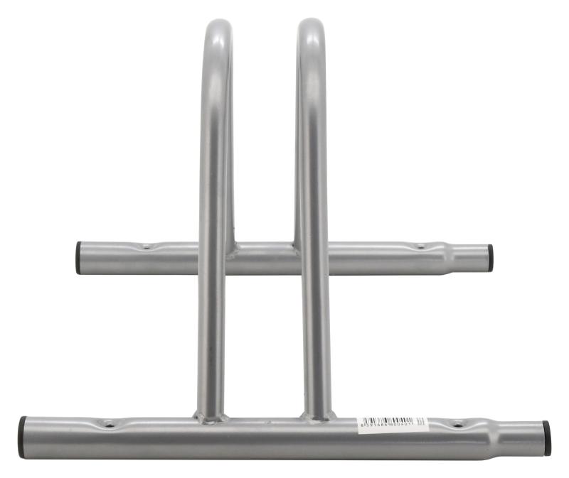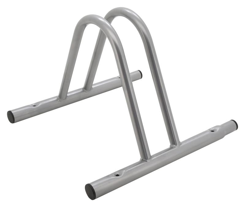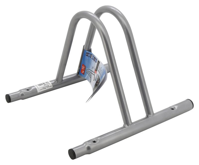 Celokovová konstrukce s šedostříbrným povrchem je opatřena trubkami o průměru 20 mm (vrchní část) a 30 mm (základnová část) zajišťuje bezpečné umístění kol.