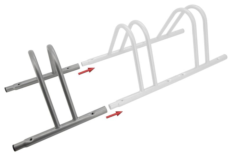 Díky zúženému zakončení je možné spojovat více stojanů dohromady pouhým vsunutím, tím je umožněno rozšířit použití i pro více kol.