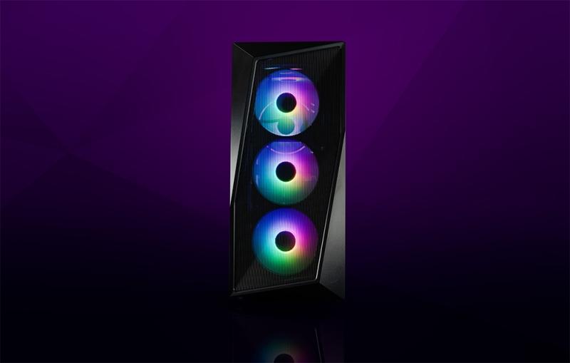 Na přední straně skříně jsou nainstalovány tři ventilátory CF120 ARGB, které zajišťují vynikající proudění vzduchu a dodávají interiéru herní atmosféru. Skříň je také vybavena vestavěným rozbočovačem ARGB, který usnadňuje správu kabelů uvnitř a umožňuje synchronizovat podsvícení prostřednictvím základní desky.