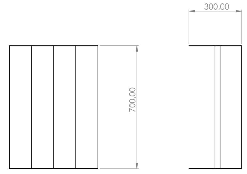 - konstrukce: dno z jednoho kusu plechu a dvě rovné bočnice pevně svařené do kompaktního celku