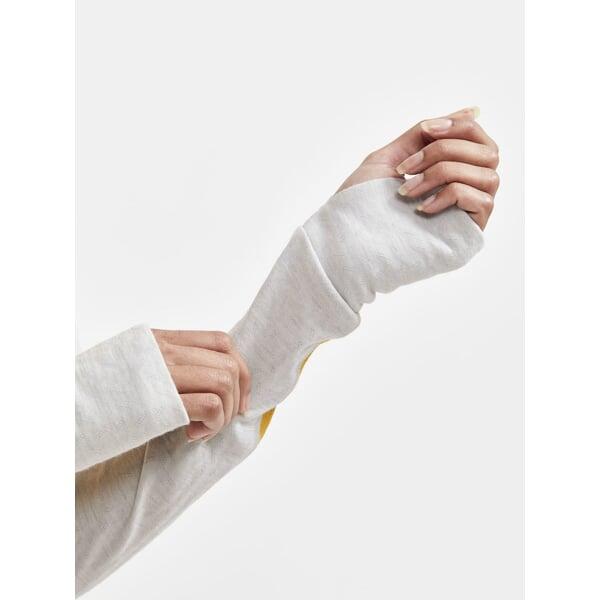 Plochými švami, ktoré kopírujú pohyby tela, je minimalizované podráždenie kože a zabezpečený maximálny komfort aj pri dlhšom nosení. Rukávy sú zakončené širokou manžetou s otvorom pre pretiahnutie cez palec, čo zabraňuje shrňovaniu a chráni zápästie pred chladom.