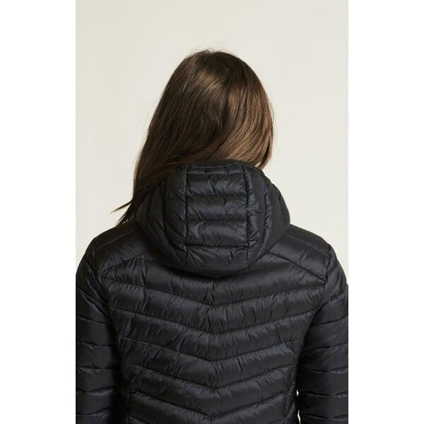 Tato dámská bunda nabízí lehký a zároveň účinný tepelný komfort díky výplni z dutého vlákna z recyklovaného polyesteru. Materiál svrchní vrstvy je z 100 % recyklovaného polyamidu, což přispívá k udržitelnému přístupu při výrobě. Výplň má gramáž 80 g/m2 na torzu a 60 g/m2 na rukávech a kapuci, což zajišťuje optimální izolaci tam, kde je to nejvíce potřeba, a zároveň zachovává nízkou hmotnost bundy.