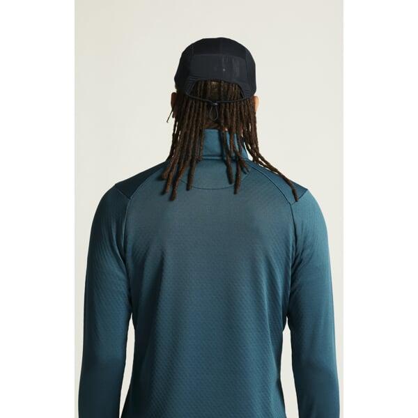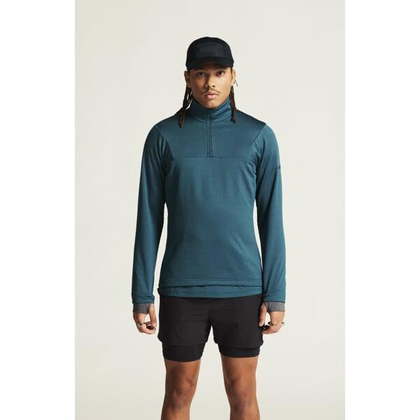 Lehký polorolák je navržený tak, aby poskytoval optimální tepelný komfort během sportovních aktivit, a zároveň efektivně odváděl pot od těla. Strukturovaný fleece z vnitřní strany zajišťuje příjemné teplo a pomáhá udržet suchou pokožku i při zvýšené námaze.