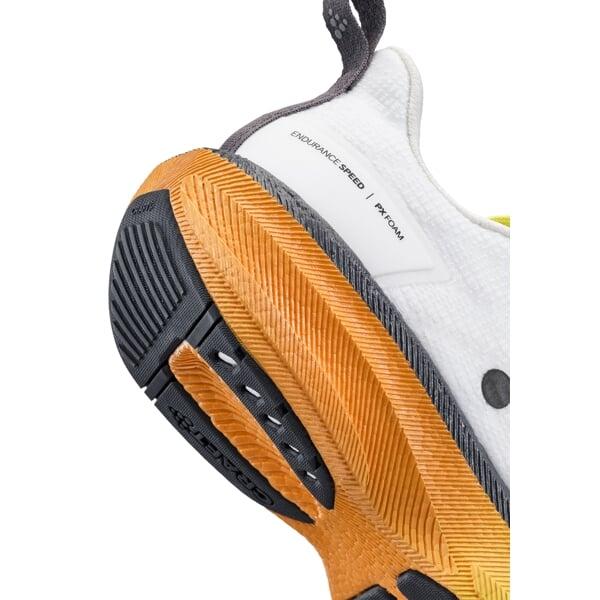 Kombinácia agresívnej geometrie a vysokej vrstvy tlmenia spolu s penou PX zabezpečuje vynikajúcu energetickú návratnosť, čo umožňuje hladký a rýchly prechod do odrazu. Vďaka tomu je jednoduché zvýšiť tempo, ale zároveň si užijete pohodlie aj pri pomalšom behu, pretože tlmenie podporuje nohu pri každom došlapu.
