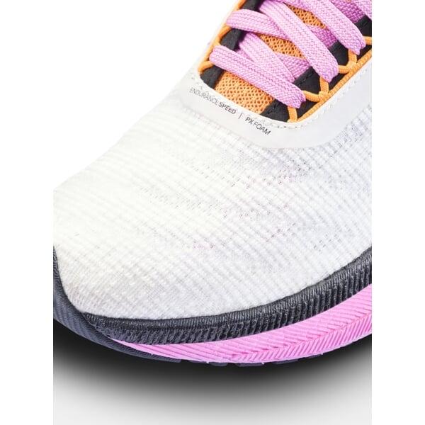 Díky agresivní geometrii podrážky a vysoké vrstvě tlumení si můžete být jisti, že každý krok bude plynulý a příjemný. Pěna PX s vysokou energetickou návratností zajišťuje efektivní přenos síly při odrazu, což usnadňuje zrychlení tempa bez zbytečné námahy. Pokud tempo snížíte, oceníte kvalitní tlumení, které chrání klouby a nohy.