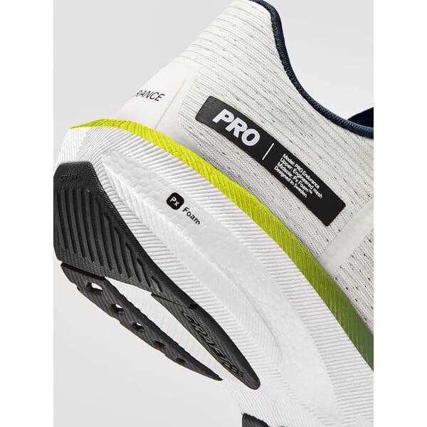 Craft PRO Endur Distance nedisponuje karbonovým plátem. Díky tomu sice nemá tuhost potřebnou pro dosažení nejvyšší možné rychlosti, ale o to všestrannější tato bota je. Agresivní geometrie vybízející k dopadu na střed chodidla v kombinaci s energetickou pěnou Pebax zajistí příjemně svižný odpich i při intervalech, tempovém tréninku, nebo delším závodě. Vyšší měkkost je dostatečně šetrná k vašim chodidlům a achilovkám, takže se PRO Endur Distance skvěle hodí pro každodenní nabíhání kilometrů.