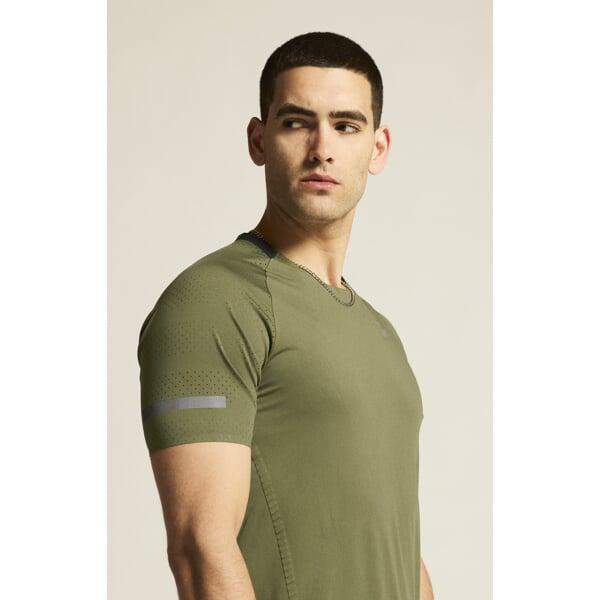 Pánske bežecké tričko ponúka nízku hmotnosť a vysokú priedušnosť vďaka perforovaným rukávom a ľahkému materiálu.Toto tričko je vyrobené z materiálu zloženého z 91 % recyklovaného polyesteru a 9 % elastánu, čo zabezpečuje príjemný a pružný pocit pri nosení.