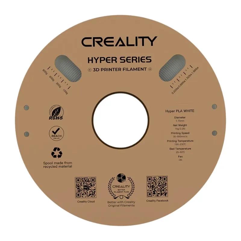 Hyper PLA Filament Creality vyniká rychlým chlazením a zároveň poskytuje vynikající přesnost. Je vyroben z vysoce kvalitních materiálů a je fantastický pro různé aplikace - od vytváření figurek přes součástky spotřebičů až po prototypy. Umožňuje rychlý a přesný tisk a nezamotává se. Je ideální pro použití ve spojení s tiskárnami Creality. Uživatelé mohou také využít službu Creality Cloud, která mimo jiné nabízí spoustu bezplatných modelů pro tisk.