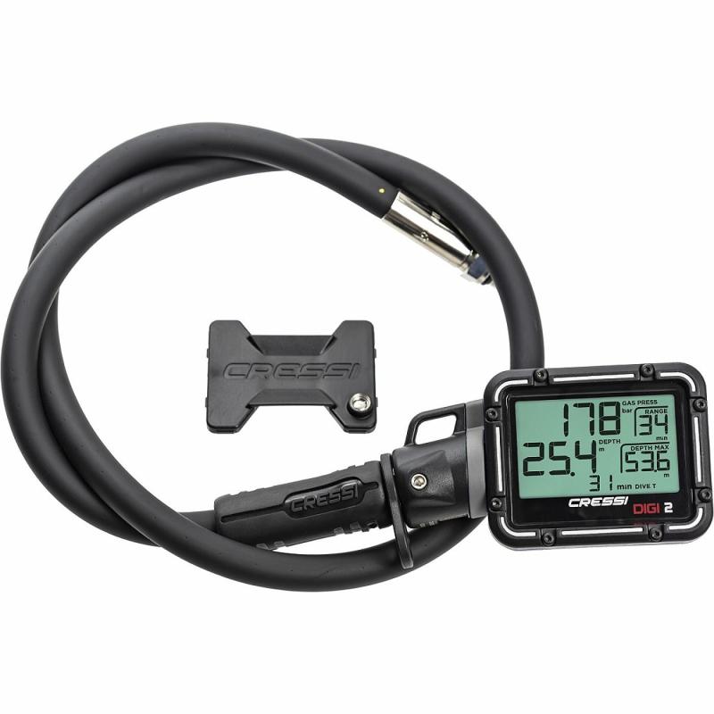 Manometr s hloubkoměrem Cressi DIGI2 disponuje nárazuvzdorným ABS pouzdrem s termoplastickým pryžovým krytem s integrovaným upevňovacím kroužkem pro připojení ke kompenzátorům vztlaku.