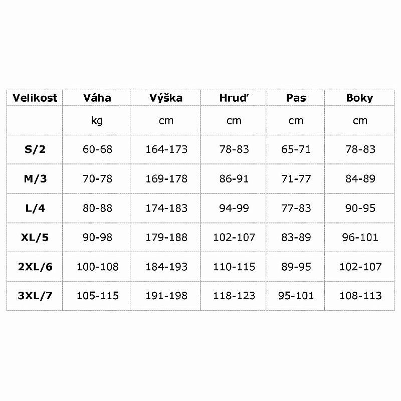 | Tabulka velikostí: | |