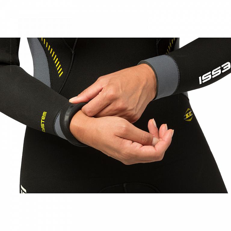 Výrazně zlepšená konstrukce uzavírání neoprenu snižuje vstup vody. Zavírací klapka je mnohem širší a oblast šíje je prodloužena, aby se zabránilo infiltraci, když je krk nakloněný pod vodou.