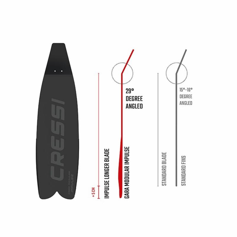 Délka listů modelu GARA MODULAR IMPULSE je delší, než je tomu u ostatních freedivingových ploutví. Tyto pevné kvalitní ploutve na freediving mají vyměnitelné listy. Výměnu zvládnete sami v pohodlí domova.