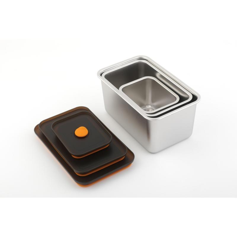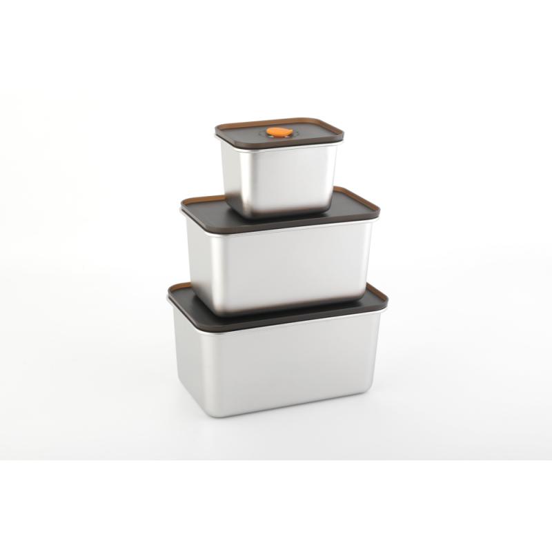 Dózy jsou vyrobeny z nerezové oceli SUS304, která je známá svou odolností proti korozi a snadnou údržbou. Víka jsou z polypropylenu (PP), materiálu odolného vůči mechanickému poškození a běžným domácím vlivům. Silikonový okraj na víku zajišťuje těsnící efekt, který pomáhá udržet potraviny déle čerstvé a zabraňuje úniku pachů.