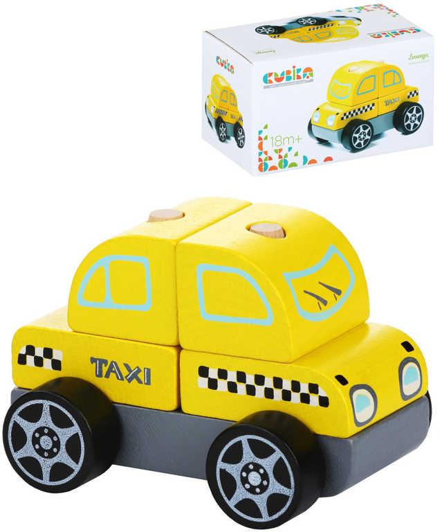 Cubika DŘEVO Baby autíčko Vůz taxi navlékací stavebnice set 5 dílků