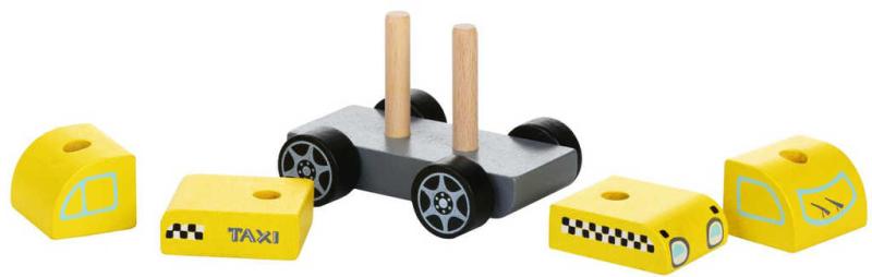 Taxi vůz je dřevěná skládačka s 5 díly, které se na sebe musí poskládat tak, aby se auto mohlo rozjet za svými pasažéry. Tato skládačka je jednoduchou stavebnicí pro nejmenší děti.