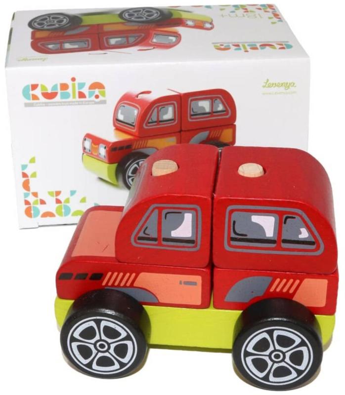 CUBIKA 13180Terénní vůz je dřevěná skládačka s 5 díly, které se na sebe musí poskládat tak, aby se auto mohlo vydat do pořádného terénu. Tato skládačka je jednoduchou stavebnicí pro nejmenší děti.