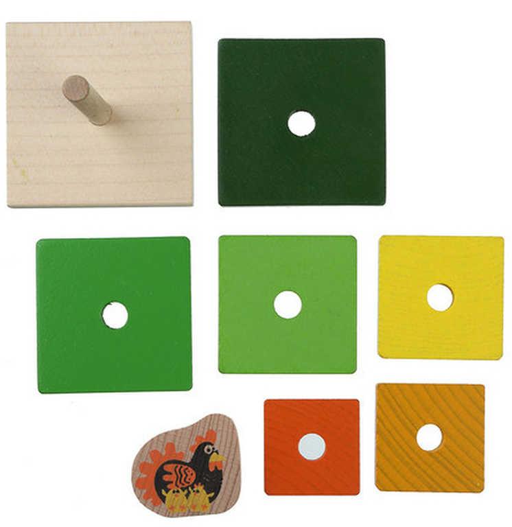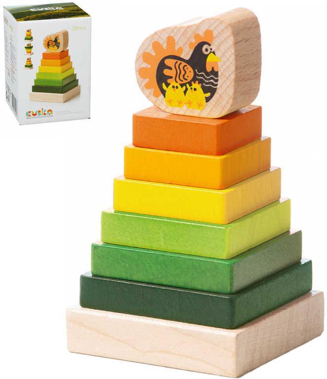 Cubika DŘEVO Baby Pyramida 8 dílků navlékací skládačka se slepičkou