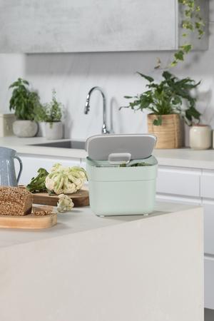 Odpadkový koš, objem 5 l, pohodlné rukojeti. Volitelný nastavitelný držák je součástí balení. Barva zelená.