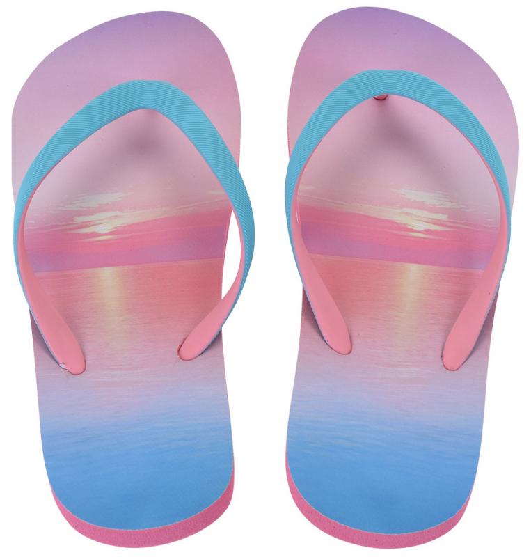 Plážové pantofle v dámských velikostech. Prostiskluzná gumová podešev.