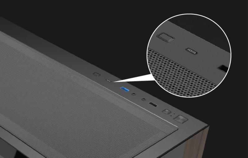 Na přední straně skříně se nachází port USB typu C, který nabízí rychlý přenos dat (až 10 Gb/s) a pohodlný přístup pro různá elektronická zařízení. Díky tomuto řešení je skříň připravena na současné hardwarové standardy a je vám vždy po ruce.