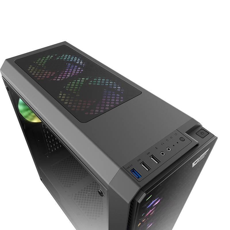Užijte si jednoduchou a pohodlnou obsluhu počítače. Skříň je vybavena 2 porty USB 2.0 a jedním portem USB 3.0, které vám umožní rychlý přenos souborů. Produkt má také vestavěné tlačítko napájení a porty pro připojení mikrofonu a sluchátek. Jeden z portů navíc podporuje režim ovládání světelných efektů RGB.