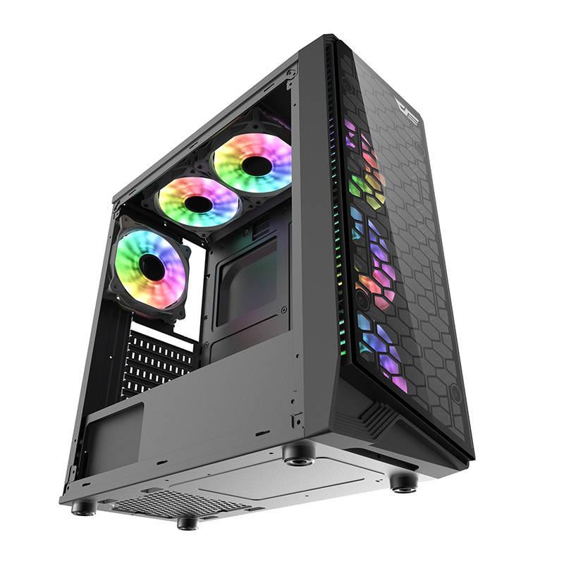 Šasi vypadá opravdu skvěle. Jeho přední panel upoutá pozornost zajímavým voštinovým vzorem. Je průhledný, což umožňuje dosáhnout fantastických efektů s využitím příslušenství RGB. Přední i boční panel je vyroben z odolného tvrzeného skla o tloušťce 4 mm.