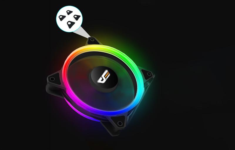 LED podsvícení dodá vašemu počítači originální herní charakter. Dva RGB kroužky zaručují úžasný efekt a mohou dokonale doplnit váš hardware. Design ventilátoru byl navíc pečlivě promyšlen, takže generované světlo zaujme svým jasem a živými barvami.