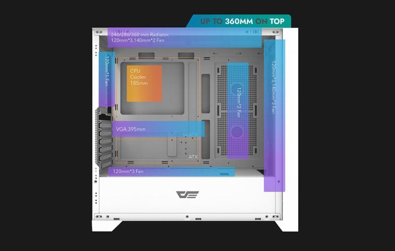 Darkflash DRX90 Glass je praktická počítačová skříň, která vám umožní vytvořit výkonnou hardwarovou konfiguraci pro práci, hraní her a další. Díky panelům z tvrzeného skla na přední a boční straně vám umožní působivě zobrazit vybrané komponenty a kompatibilita s různými standardy základních desek a oblíbenými komponenty vám poskytne plnou svobodu při instalaci. Snadno se také postaráte o účinné chlazení počítače - nainstalovat lze až 12 ventilátorů.