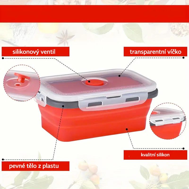 Praktické skládací silikonové dózy pro snadné balení a uchování potravin. Další využití silikonových dóz je např. jako svačinová dóza do školy nebo do práce, na výlety apod.