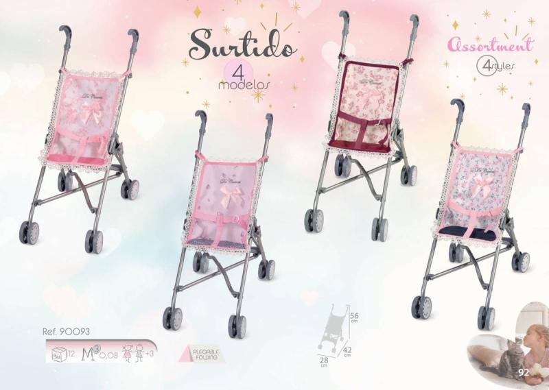 DeCuevas 90093-2Skládací kočárek pro panenky golfové hole Daniela - 56cm pochází z krásné kolekce v růžových barvách s květinovým vzorem. Tříbodový pásový systém pro uchycení panenky. Stabilní kovová konstrukce. Bezpečnostní systém zabraňující uskřípnutí dětských prstíků. Baleno v igelitu.