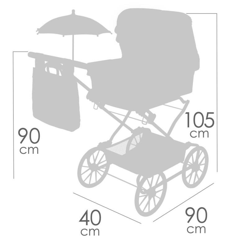 • Rozměry kočárku: 90 × 40 × 105 cm (celková výška kočárku)