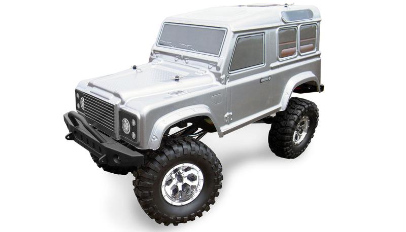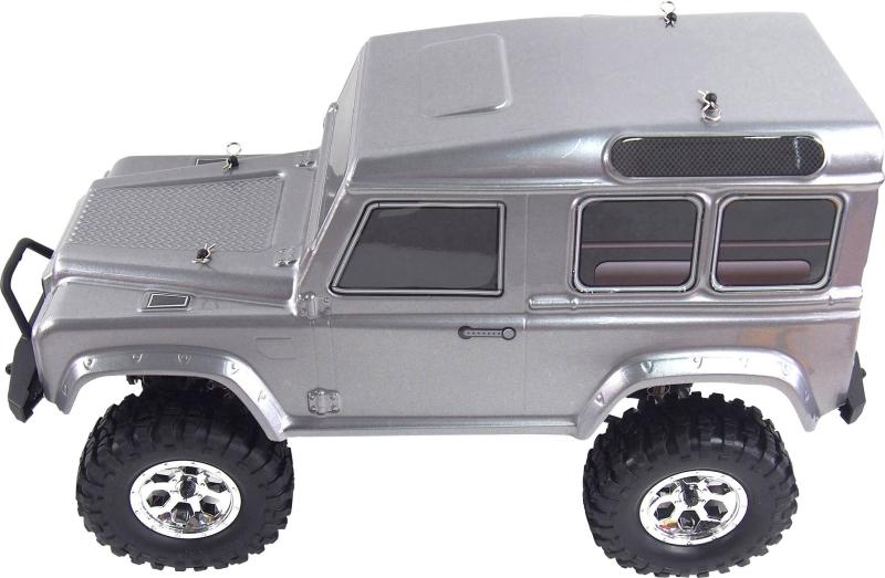 Vynikajícím vstupem do světa crawlerů a jejich terénních schopností je model AMXrock CRUISER Defender 4WD 1:10 od německé značky Amewi ze série Xrock AMseries. Tento model se spíše puristicky zaměřuje na skvělé jízdní a terénní vlastnosti než na spoustu technologických vychytávek. Nicméně jak se říká v jednoduchosti je síla a u toho crawlera to platí dvojnásob. Základem všeho je robustní kovové šasi, na kterém je vše potřebné, jako je silný stejnosměrný motor, servo s tahem 3 kg, kvalitní odpružení kol, kovový kardan, řídící jednotka a akumulátor. Podvozek stojí na velkých gumových měkčených pneumatikách a je voděodolný, takže se nemusíte bát případných kaluží na cestě k vrcholu. Jelikož crawler musí umět správně "šplhat" po svazích, má speciální elektronický regulátor, který má funkci zabrzdění a zastavení modelu při sjíždění svahu. Tato utilita se označuje jako svahová brzda. Karoserie je vyrobená z velmi kvalitního Lexanu ve stylu legendárního Land Roveru Defenderu. Samozřejmostí jsou uzamčené diferenciály a ovladač 2.4 GHz, se kterým můžete svého 4x4 crawlera plně proporcionálně ovládat. Co jistě také potěší je LED osvětlení, díky kterému můžete zdolávat terén, až do pozdních večerních hodin.