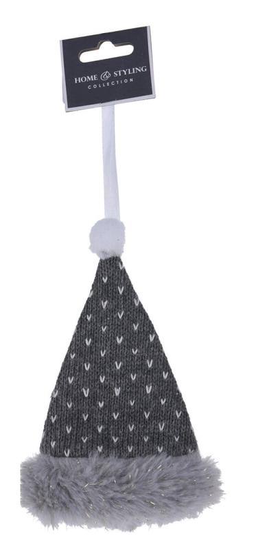 Dekorace závěsná mix RUKAVICE / PUNČOCHA / ČEPICE, 15 cm, BÍ, ŠE.výška: 15 cm