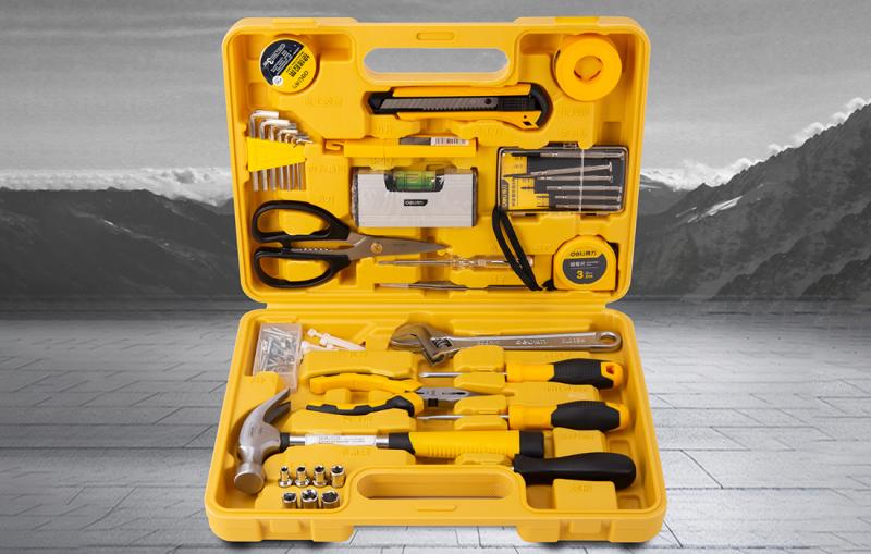 Sada Deli obsahuje 38 kusů nářadí, které jistě využijete. Ať už montujete skříňku, kuchyňské doplňky nebo lampu, sada EDL1038J se vám v těchto a podobných situacích bude hodit. Všechny prvky sady jsou umístěny v praktickém kufříku, díky kterému bude jejich skladování jednoduché a pohodlné. Sada obsahuje: nůž s nastavitelnou délkou čepele, 10 náhradních čepelí, izolační pásku odolnou proti vodě a ohni o délce 3 m, svinovací metr o délce 2 m, 2 šroubováky s protiskluzovou rukojetí, kleště z nerezové oceli, kladivo z uhlíkové oceli, nastavitelný klíč (8") s chromovanou povrchovou úpravou, teflonovou pásku odolnou proti ohni, nylonové zipy, sadu 6 poniklovaných šestihranných klíčů, pinzetu z nerezové oceli, nůžky, vodováhu z nerezové oceli, sadu šestihranných zásuvek a zkoušečku napětí odolnou proti korozi pro zásuvky 100-500 V.