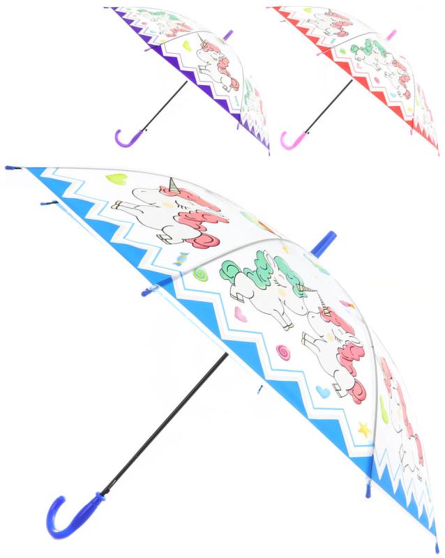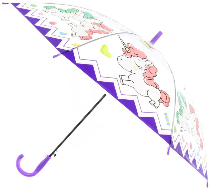 Automatický průhledný holčičí deštník s motivy jednorožců, ve třech barevných variantách. Baleno v igelitovém sáčku.Pěkný deštníček by neměl chybět ve výbavě žádného dítěte. Chůze v dešti se díky takovému deštníku stane pak tou pravou zábavou.