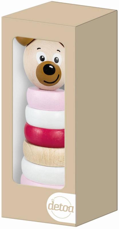 Detoa DŘEVO Baby pyramida navlékací věžička medvídek růžová