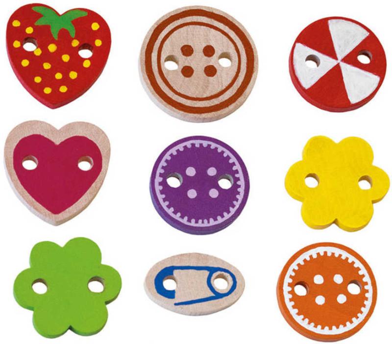 Detoa DŘEVO Vyšívání Krtek (Krteček) set 26 dílků s tkaničkou a knoflíky