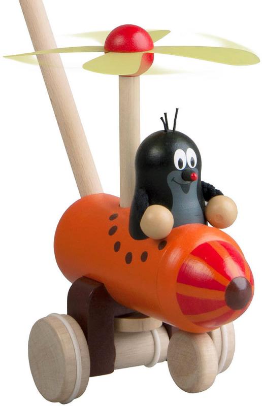 Dětské strkadlo Krtek a vrtulníkje zdravotně nezávadný výrobek. Vrtule letadélka se při pohybu strkadla točí.