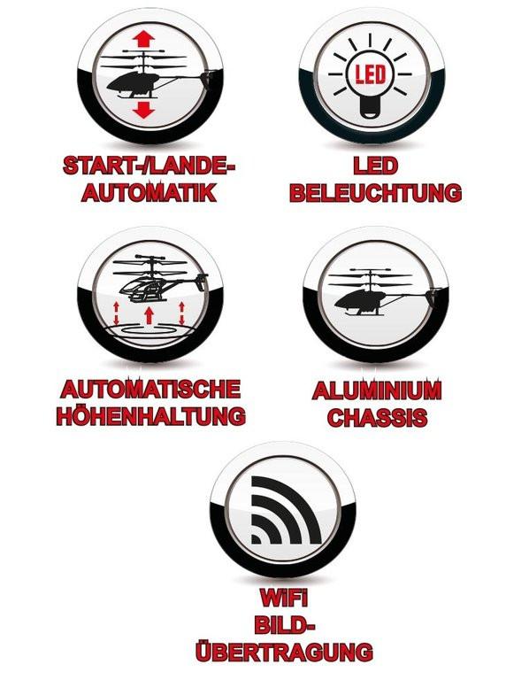 Kvalitní německý výrobce DF Models představil svou novinku v podobě netradičního vrtulníku s kamerou a názvem DF-100 FPV. Jak již prozrazuje název, vrtulníček je osazen HD kamerou s funkcí FPV (first-person view) což znamená, že dokáže přenášet obraz v reálném čase přímo na Váš mobilní telefon. DF-100 je vyrobená s důrazem na letové vlastnosti a také kvalitu, což podtrhuje hliníkové šasi a kabina z pružného odolného plastu. Vrtulník využívá i moderní funkce včetně barometru, model drží nastavenou výšku, nebo třeba AUTO vzlet/přistání. To vše doplňuje LED osvětlením, které oceníte hlavně za ztížených světelných podmínek. Samozřejmostí je ovládání na pásmu 2.4 GHz se 3 kanály. Balení je ve verzi RTF kde najdete kromě baterií do ovladače vše potřebné pro provoz.