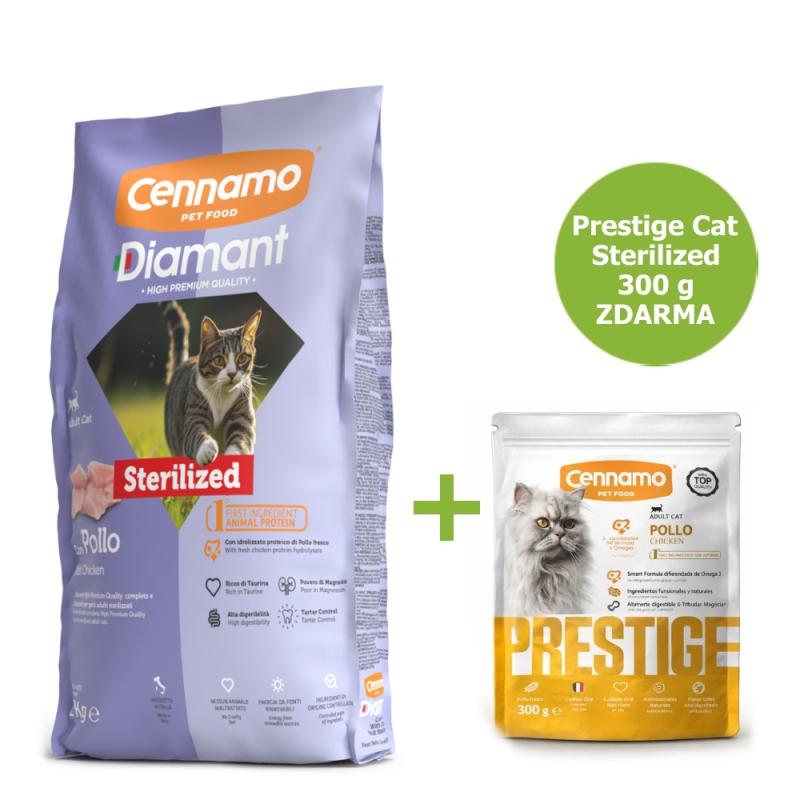 Dodanie produktu Diamant Cat Micio Sterilised Kuřecí 2 kg + Prestige Cat Sterilized Pollo Kuřecí 300 g ZDARMA