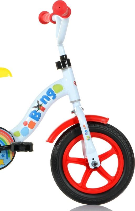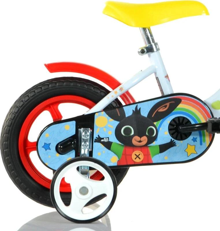 Dětské kolo značky Dino Bikes je navrženo pro malé cyklisty, kteří mají rádi postavičky Králíčka Binga a jeho kamaráda Flopa. Vybaveno je kompozitovými paprskovými koly o průměru 10 palců (25 cm) s plnými plášti, které jsou vyplněné pěnou EVA. Díky tomu nehrozí defekt a není potřeba kola dofukovat, což zjednodušuje údržbu a zvyšuje spolehlivost. Kolo používá stálý převod bez volnoběhu, tzv. furtšlap, který umožňuje jízdu dopředu i dozadu – dítě tak může jet i bez nutnosti ovládat ruční brzdu, což je ideální pro začátečníky a jízdu v nižších rychlostech.