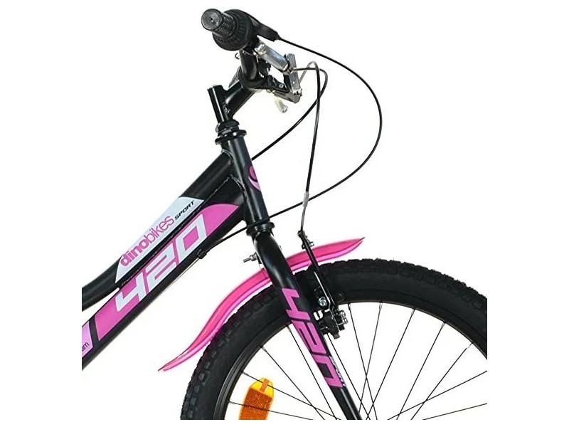 Juniorské kolo Dino Bikes se vyznačuje propracovaným designem dávajícím kolu sportovní vzhled. Velkou výhodou všech našich kol italské výroby je, ŽE JSOU SEŘÍZENÁ PRO PROVOZ A NA 95% SMONTOVANÁ. Zbývá pouze nasadit řidítka, sedlo a připevnit případně blatníčky (pokud jsou součástí je kola). Kolo má hliníkové ráfky 20 palců = 51 cm, dvouvrstvé nafukovací pláště s jemným vzorkem na silnici i do nenáročného terénu o rozměrech 20' x 2,125', volnoběh na zadním kole. Sedlo lze nastavit do výšky 56 - 68 cm. Kolo je vyrobeno s odlehčeným vyztuženým rámem z Hi-ten oceli. Součástí výbavy je stojánek na kolo. Kolo má přední a zadní velmi účinné 'V-brzdy' a otočné Grip Shift - šestistupňové převody Shimano TZ-20 se 14/28 zubů s řazením na rukojetích řidítek. Na kole jsou dva malé plastové blatníčky a tenký kryt řetězu v barvě kola. Hmotnost je 11,7 kg. Nosnost kola je 100 kg. Kolo je vyrobeno v EU a má veškeré bezpečností certifikáty. Barva kola je černo růžová líbivá kombinace.80068179064834259
