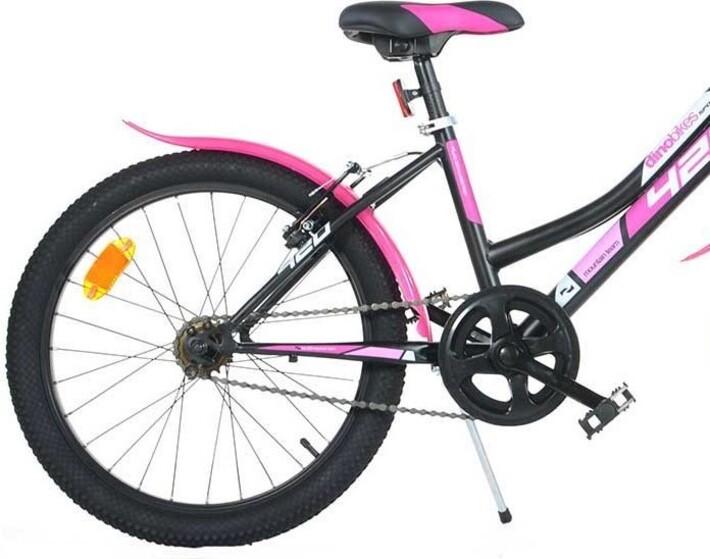 Detské kolo Dino Bikes Aurelia 420D čierno ružové 20" je dievčenské horské kolo, ktoré je určené pre všetky aktívne dievčatá. Kolo je odporúčané pre výšku dieťaťa 120-145 cm a pre deti vo veku cca 7 - 11 rokov. Maximálna nosnosť kola je 10 .Má vypletené lakované hliníkové ráfiky 20" (20 palcov = 50 cm) a nafukovacie plášte.